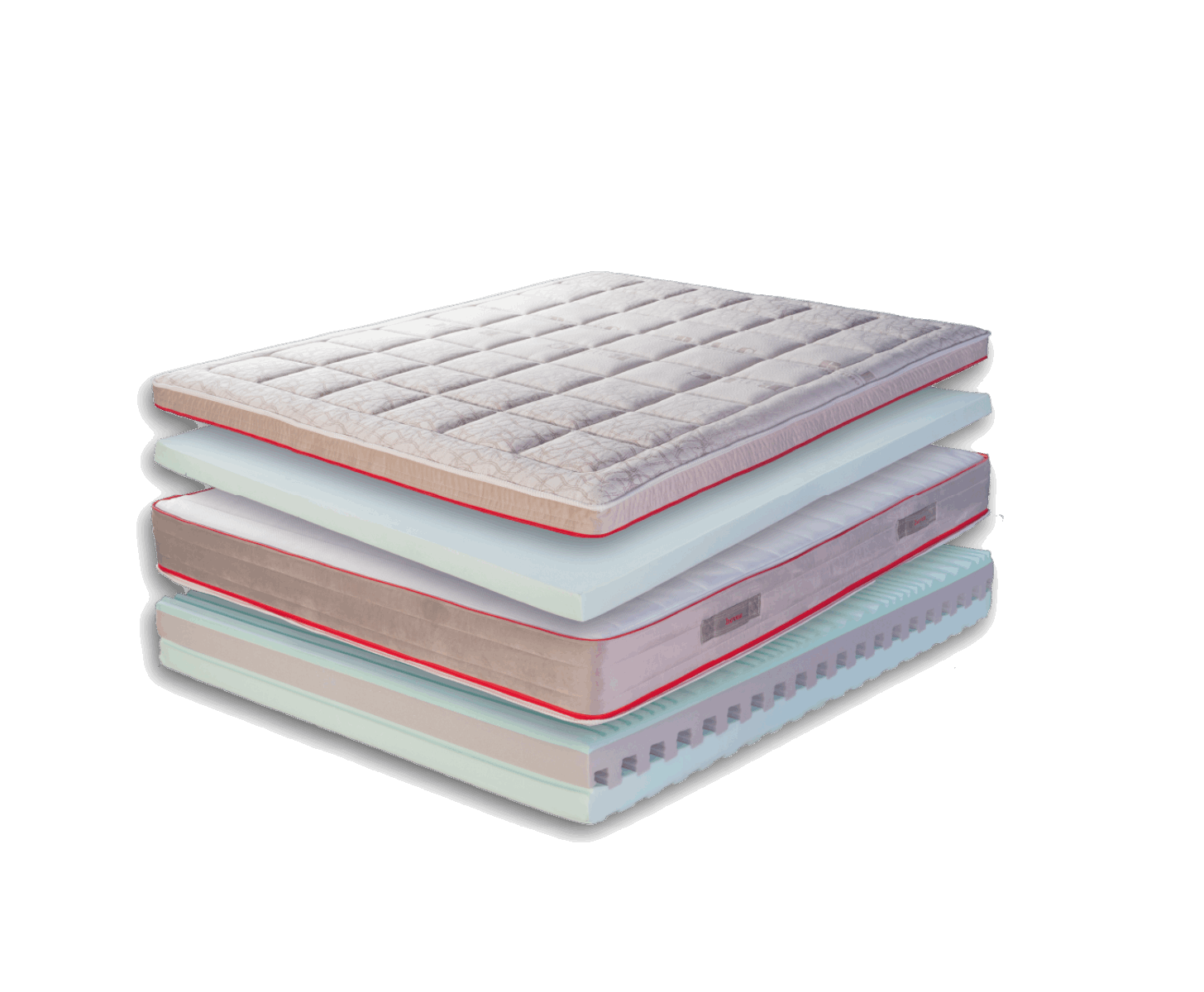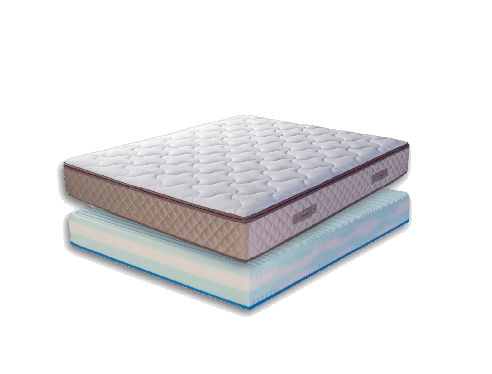 Il top è costituito da memory foam viscoelastico automodellante ad alta densità, mentre i due strati inferiori, realizzati in schiuma ecologica all’acqua, presentano zone differenziate per un sostegno bilanciato e speculare.