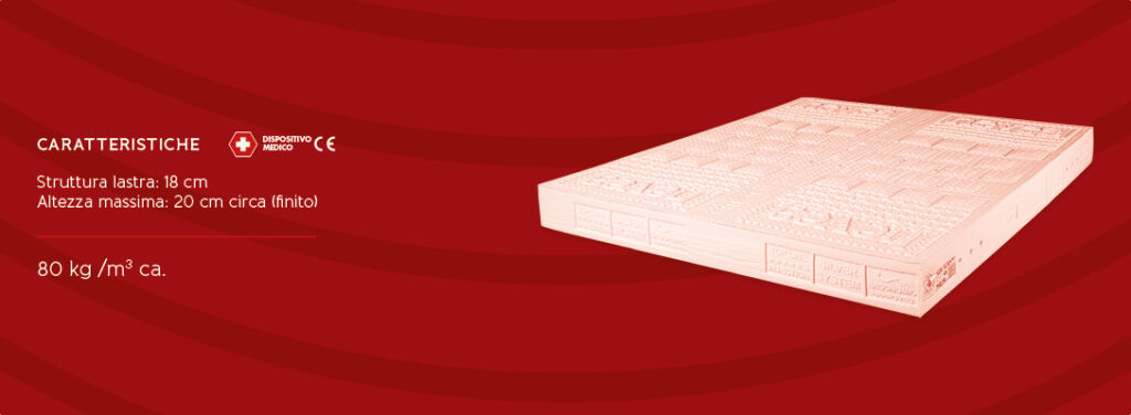 Completato da pannelli in Biofoam elastico, offre proprietà anatomiche, antiacaro e anallergiche. Il modello Flexus è certificato come dispositivo medico.